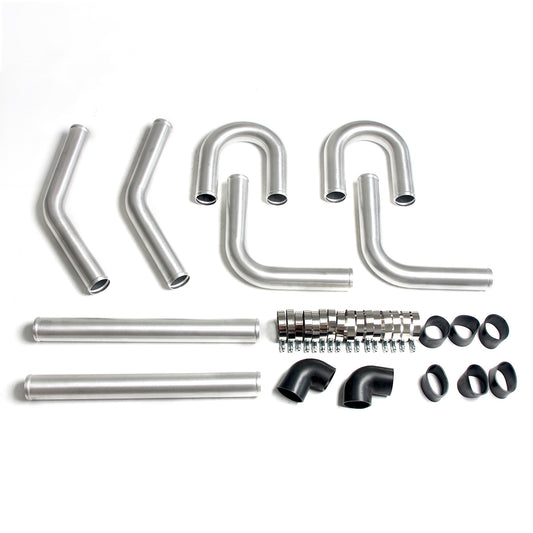 UNIVERSAL 2.5" ALUMINUM SILICONE HOSE+CLAMP SILVER INTERCOOLER PIPES KIT