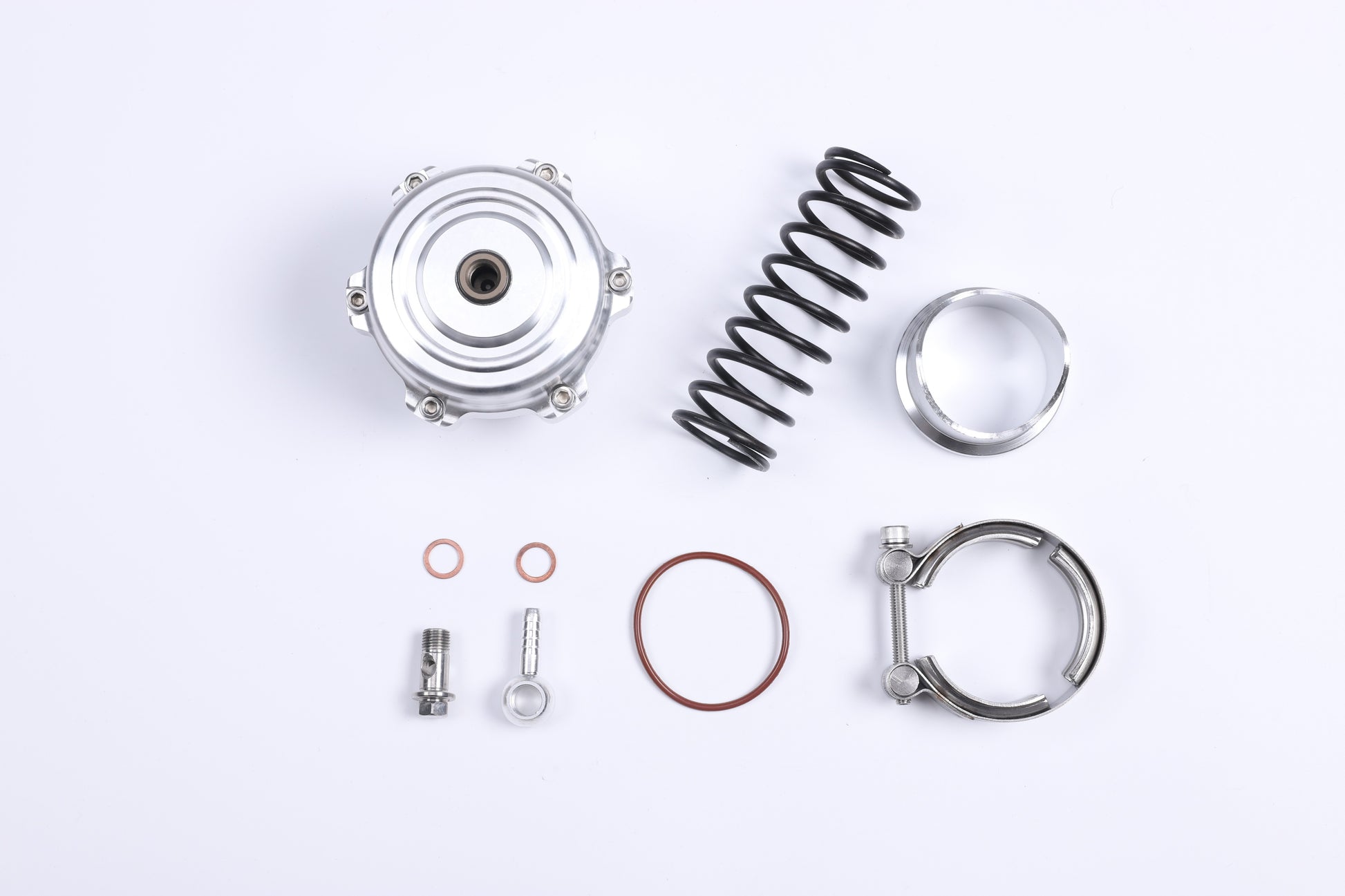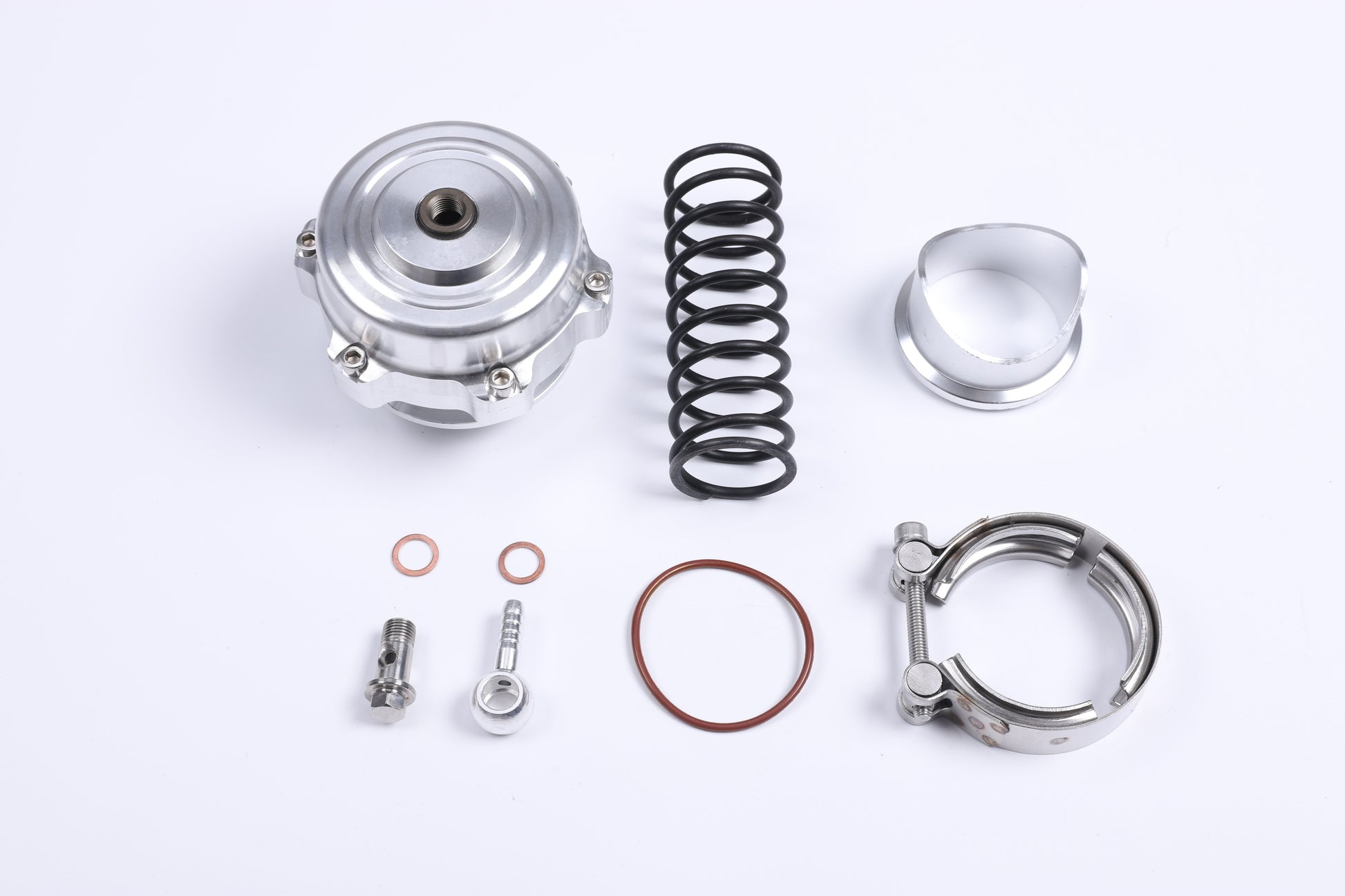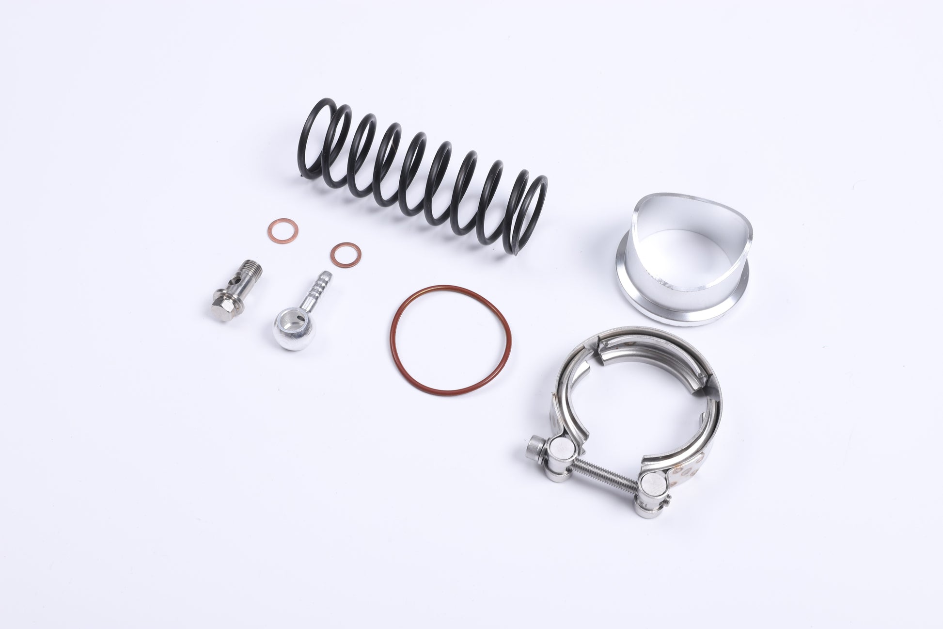 Complete Kit: Includes V-band clamp, weld-on flange, vacuum fittings, and hardware